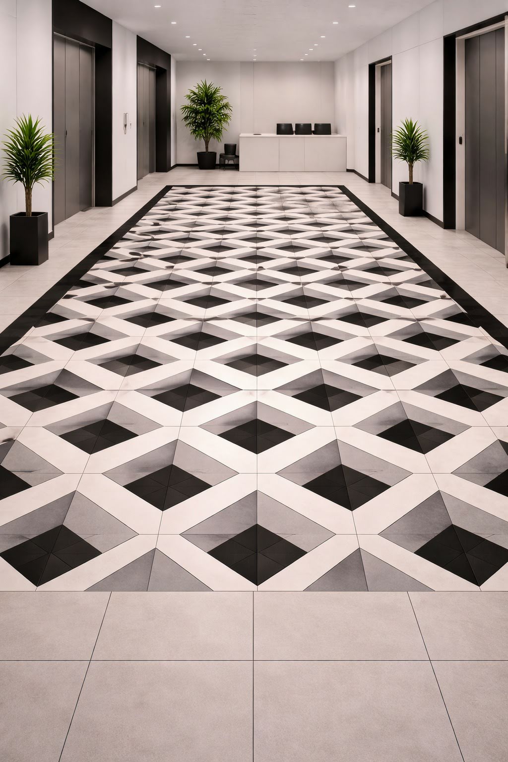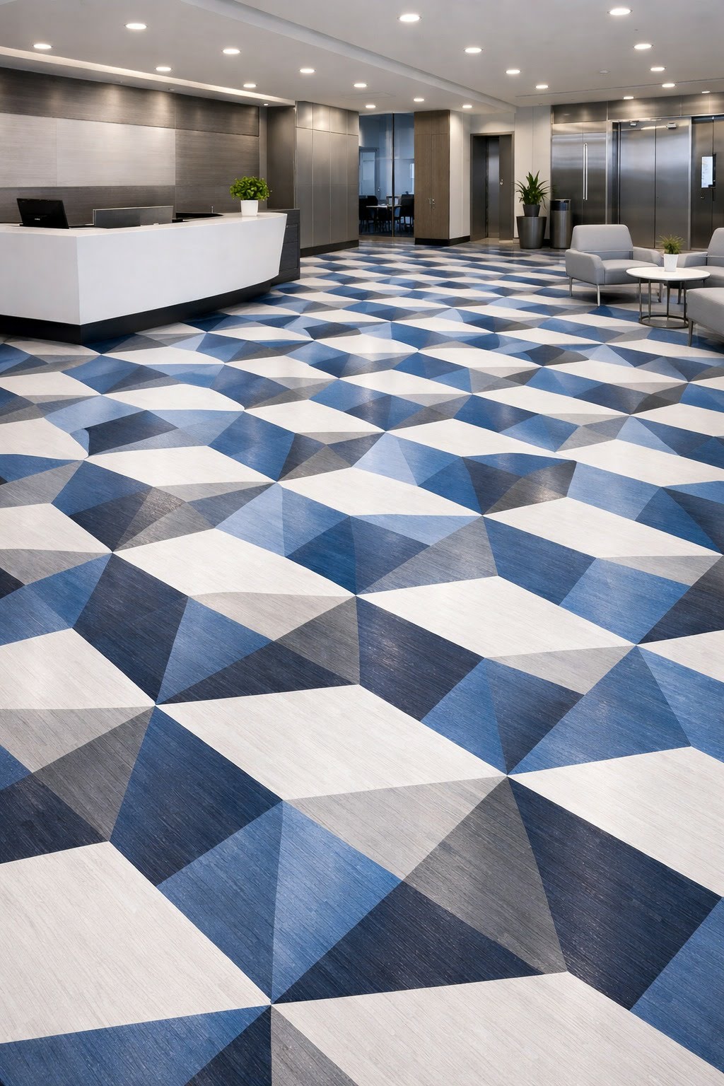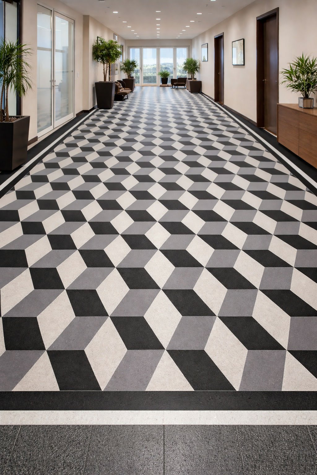 Podlahy jsou tvořeny modulárními dílci, které se skládají do přesně definovaných geometrických vzorů. Díky tomu vznikají unikátní designy s 3D optickým efektem, které zaujmou na první pohled.