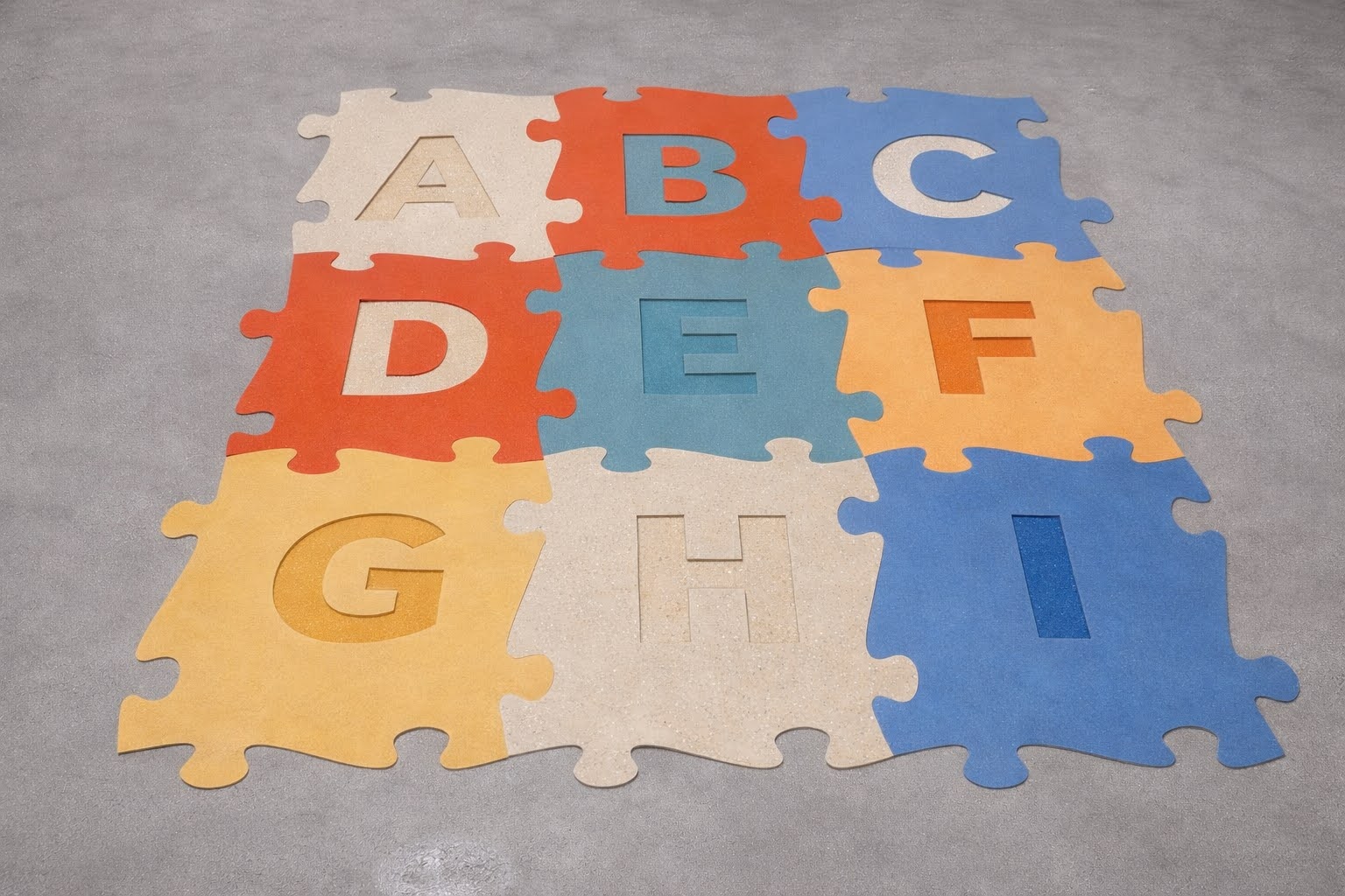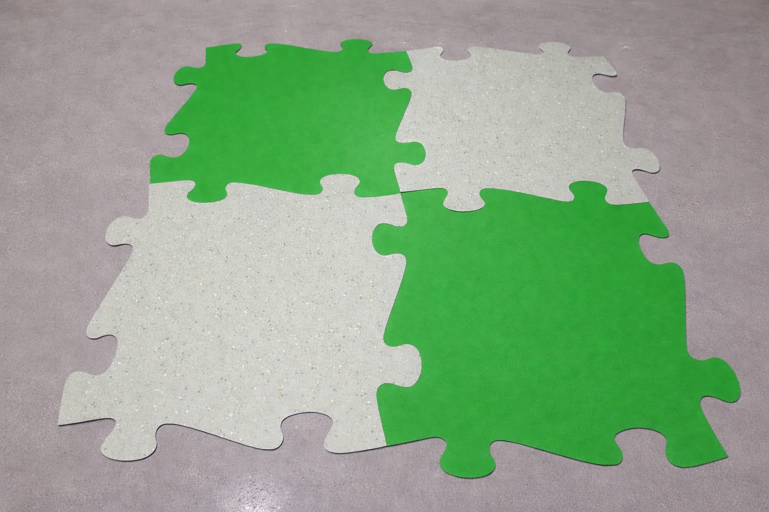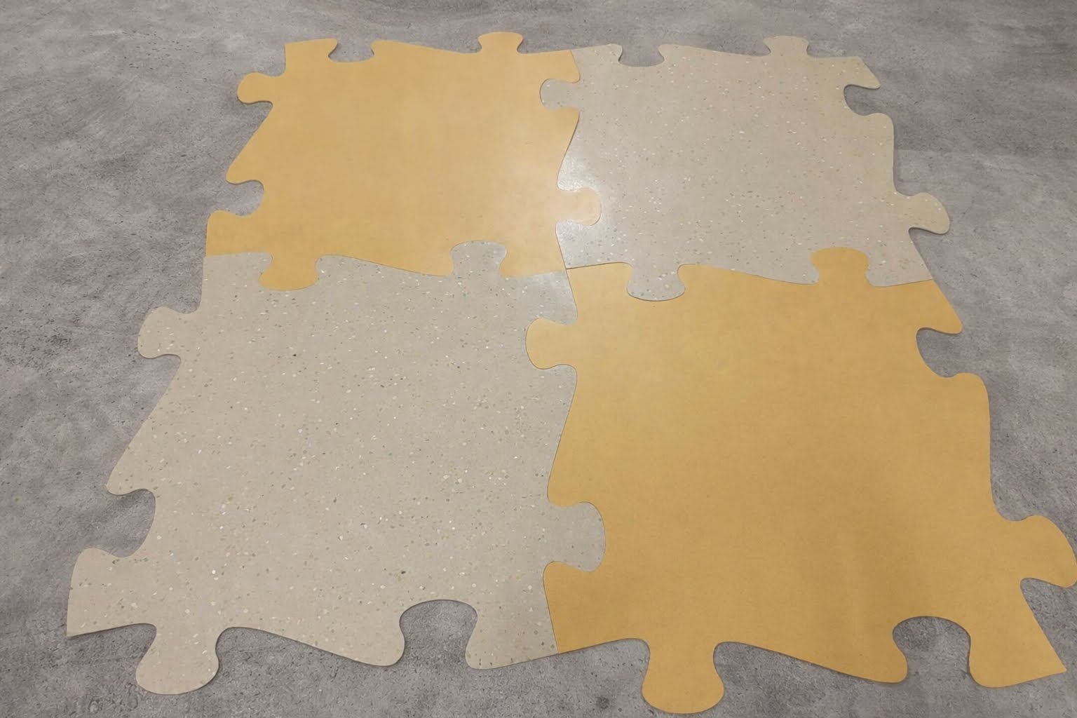 Puzzle podlaha z vysoce kvalitní gumové krytiny, určenou do bytových, komerčních nebo vysoce zatěžovaných prostor.